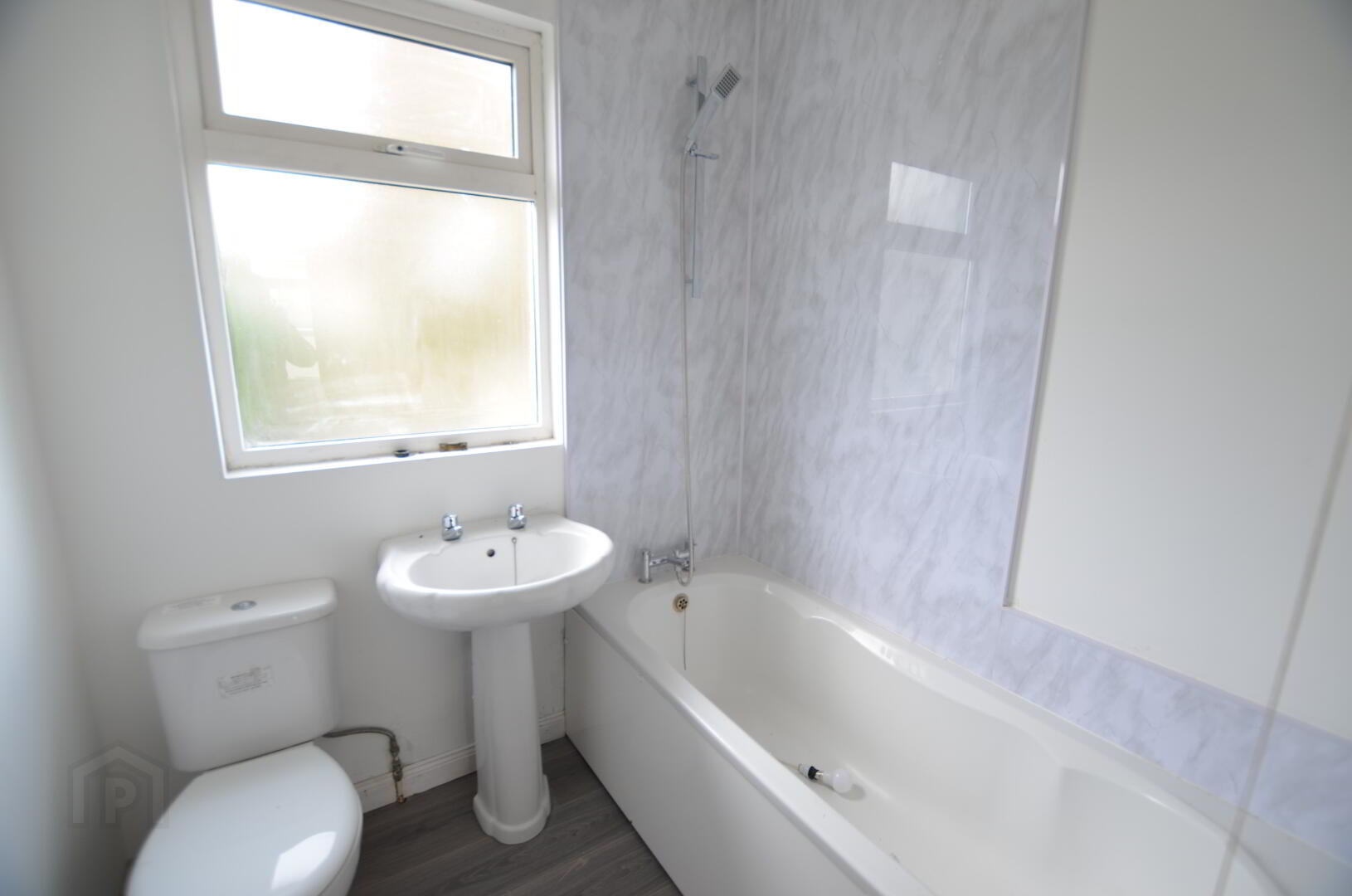 Bathroom :- 1.84m x 1.79m Low flush wc, wash hand basin, panelled bath.