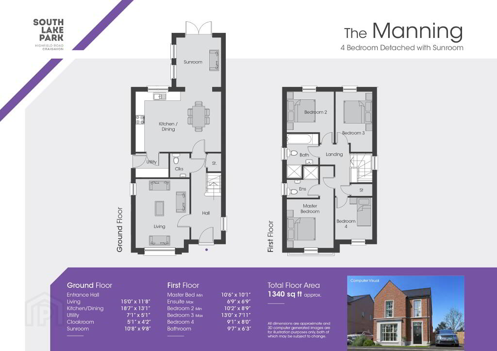 All dimensions are approximate and 3D computer generated images are for illustration purposes only, position of solar PV panels may vary depending on plot or orientation, both of which may be subject to change.